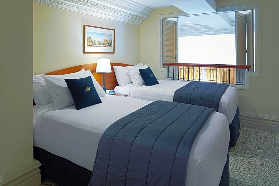 Located in the elegant Old Government Building, this spacious 2-story apartment has downstairs a kitchen, lounge and dining area, bathroom, and laundry facilities. It comes with satellite TV and cinema channels.